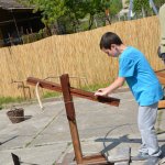 Amíg az esti koncertre várakoztunk, egy középkori várudvart építettünk katapulttal és nyílvetőgéppel, valamint a vicces kedvűek páncélos lovagok fejét dobálhatták.