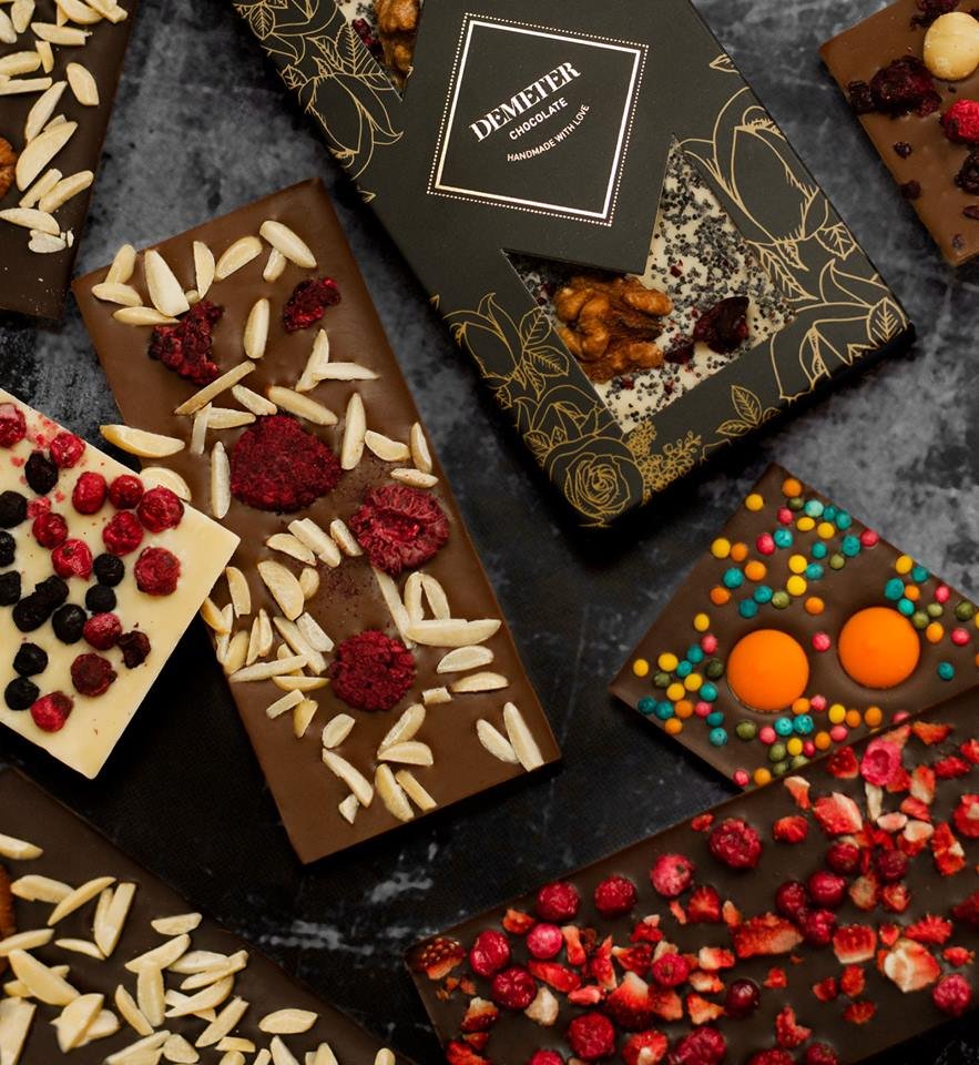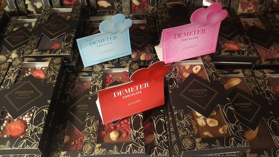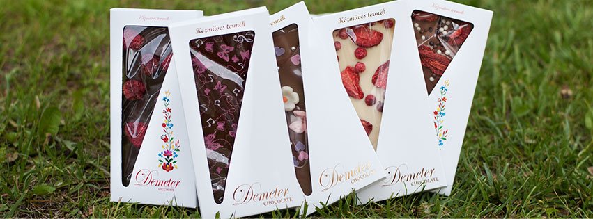 Egy érdekes tapasztalással kezdem a bevezetőt: megvan-e Nektek az a felismerés, amikor a látszólag spontán és nem célzott találkozásokból, egymás mellé sodródásból, az idő múlásával útitársakat kapunk az élettől. Egyszer csak „kicsi lesz a világ”, egy napon ismét egymás mellett találjuk magunkat. Ismeretségünk a Demeter Családdal egy évekkel ezelőtti, helyi, karácsonyi kézműves vásárban kezdődött, ahol egymás melletti standon mutattuk be és árultuk hitünk végtermékeit. A teljes család képviselte magát, ahogy az egyes munkafolyamatokban is: ízléses installáció Zsuzsa kezei által, csokicsodák férje, lánya, és fia által. Akkoriban egy helyi kézműves közösséget képviseltem, jól illettek egymáshoz a nemez-, fa-, kerámia tárgyak és a kézműves szaloncukrok, csokoládék naturális, természetes tálalása, a valódi, különleges ízekről nem is beszélve. Esszenciális összetevői voltak ezek a portékák, a hagyományos és eredeti kínálatnak, melyekkel három napon keresztül büszkélkedtünk a decemberi hidegben. Azóta sok-sok jó dolog történt Zsuzsáékkal, Demeterék csokijából megszületett a Demeter Chocolate brand, mely mára már számtalan egyedi ízt, formát takar. Tavaly decemberben minőségi, helyi élelmiszerekből álló ajándékkosarat kellett összeállítanom, adta magát a helyzet, hogy bekopogjak Zsuzsáékhoz, hogy az Ajándékozott ízlelőbimbóinak komfortzónáján jókorát tágítsunk. Csak ámultam a volumenjük láttán, hogy hova fejlődtek három év leforgása alatt, és bámultam az egyedi designos csoki- kánaánt, masszaállapottól egészen a raklapokra halmozott zsugorfóliás dobozos termékekig, melyek már csak szállításra vártak. Beszélgetésre akkor nem sok idő jutott, így azt, ezzel az interjúval pótólom. Ketten beszélgetünk, de Ti is hallhatjátok, olvashatjátok ezt