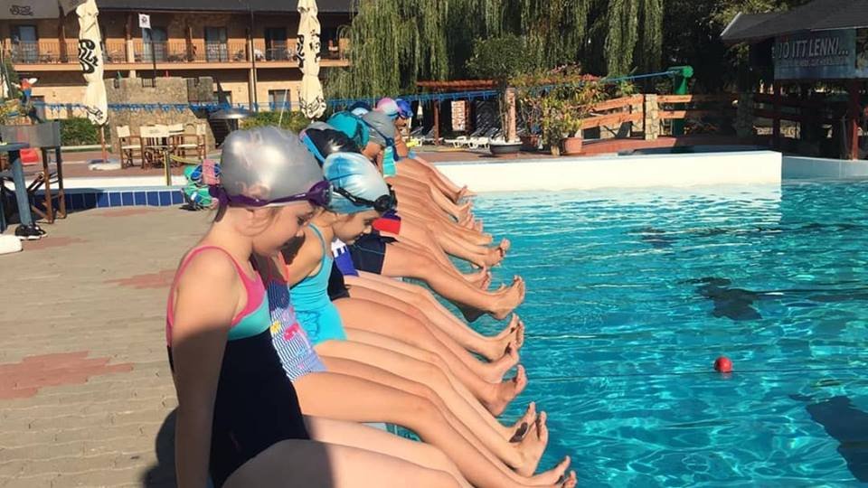 Anett: Az üzemeltetési oldalról kezdenénk, azaz, az Aqua Land Termálfürdő tulajdonosával Karczagi Sándorral és üzemeltetési vezetőjével, Kolter Gáborral. Ők biztosítják számunkra az oktatáshoz kapcsolódó infrastruktúrát. Velük is nagyszerű csapatot alkotunk úgy, hogy különböző célközönséget szolgálunk ki egy helyen és egy időben. Jómagam oktatok, Linda a Csapat motorja, övé az oktatásszervezés és a marketing, Regina pedig a több, mint ideális szakmai parterem az oktatásban. A jövőben szeretnénk Csapatunk oktatói létszámát növelni olyan csapattagokkal, akik tovább építik az új gyermek-, és tehetségközpontú pedagógiánk alapjait és akikkel további szintekre léphetünk. Az oktatásban számomra az alapok megfelelő letételének kiemelt jelentősége van, példaként, amíg nincs egy biztos alapod nem építhetsz rá házat. Úszóiskolánk alapfilozófiája, hogy építs egy jó alapot és aztán haladj tovább. Esetenként ezért tűnhet talán lassabbnak a fejlődés folyamata, mert egyetlen gyermeket sem engedek továbblépni, amíg a helyes alaptechnikák nincsenek meg. A gyerekek fejlődése egyénenként változik, kinek több, kinek kevesebb időbe telik az alapok elsajátítása.